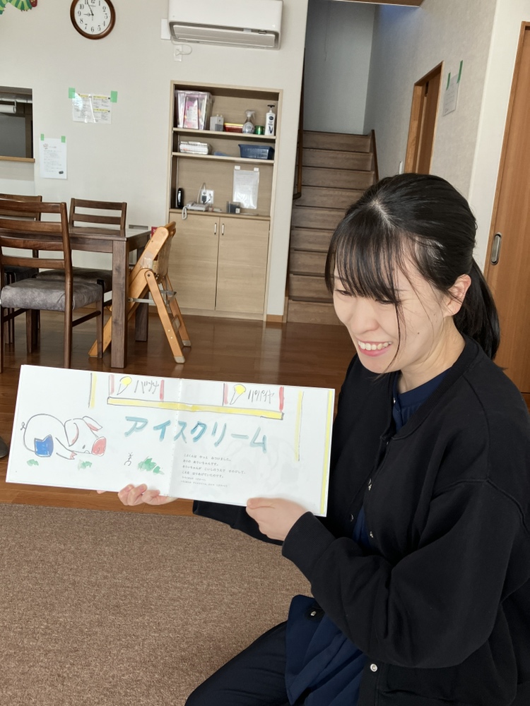 年長の時に担任をしてもらっていた先生に憧れがあり、保育園・幼稚園の先生になりたいという思いで、保育・教育を学ぶことができる大学を選択しました。保育園での実習にて「この子、気になるな」という子どもに出会い、その子との関係構築・一対一での関わりを意識していましたが、保育の現場では、個々の育ち・学びだけでなく、集団での育ち・学びも欠かせない大切な視点であることに気付きました。そこで「私がやりたいことはこれじゃない」「もっと一人ひとりの子どもと丁寧に関わる仕事がしたい」と葛藤していた時、施設実習で樹心寮に出会いました。樹心寮では、子ども6人に対し職員4人で一人ひとりと丁寧に関わることができること、様々な背景がある子ども達がホームで安心して伸び伸びと過ごせること、ホーム職員と専門職の職員でチームとしての支援ができること、職員さんが皆やりがいを持って働いていること等たくさんの魅力を感じました。また個人的に、保育園で朝「おはよう」と出迎え、夕方「さようなら」と別れることよりも、樹心寮で朝「いってらっしゃい」と送り出し、夕方「おかえり」と出迎える方が温かみがあって、当たり前だけど素敵な言葉だなと感じました。これらの理由から、樹心寮での就職を決めました。